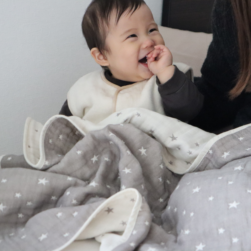 This is a gift box with frequently used items including a 4-ply gauze sleeper, bib, handkerchief, a must-have baby item, and a 6-ply gauze multi-skirt S, a convenient size for carrying around in a stroller or car. The sleeper and multi-skirt in particular are items that can be used for many years from newborns to kids. The set is packaged in an original gift box to give a special touch to your baby's preparation for birth or as a baby gift.