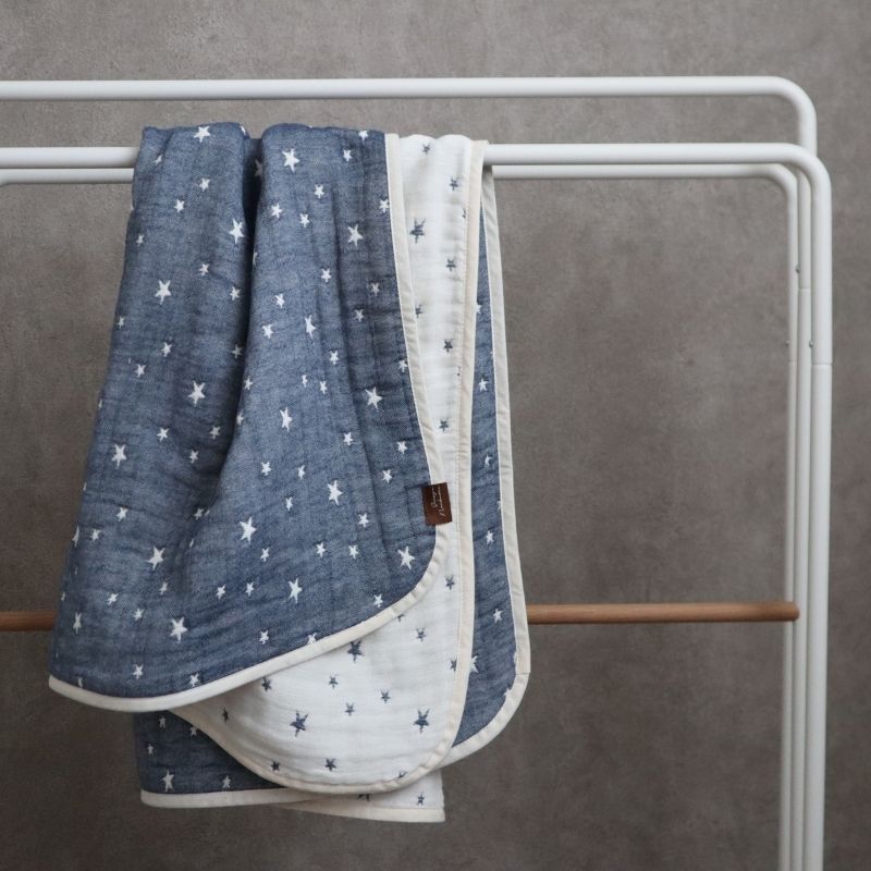 The fabric is woven with a six-layer structure that takes in air every time it is washed, making it soft and fluffy to the touch. In summer, it quickly absorbs perspiration, and in winter, the layers of air keep you warm. It is an excellent product that comfortably regulates temperature throughout the year. It is also ideal as a lap blanket, a baby's nap blanket, or a swaddling blanket.