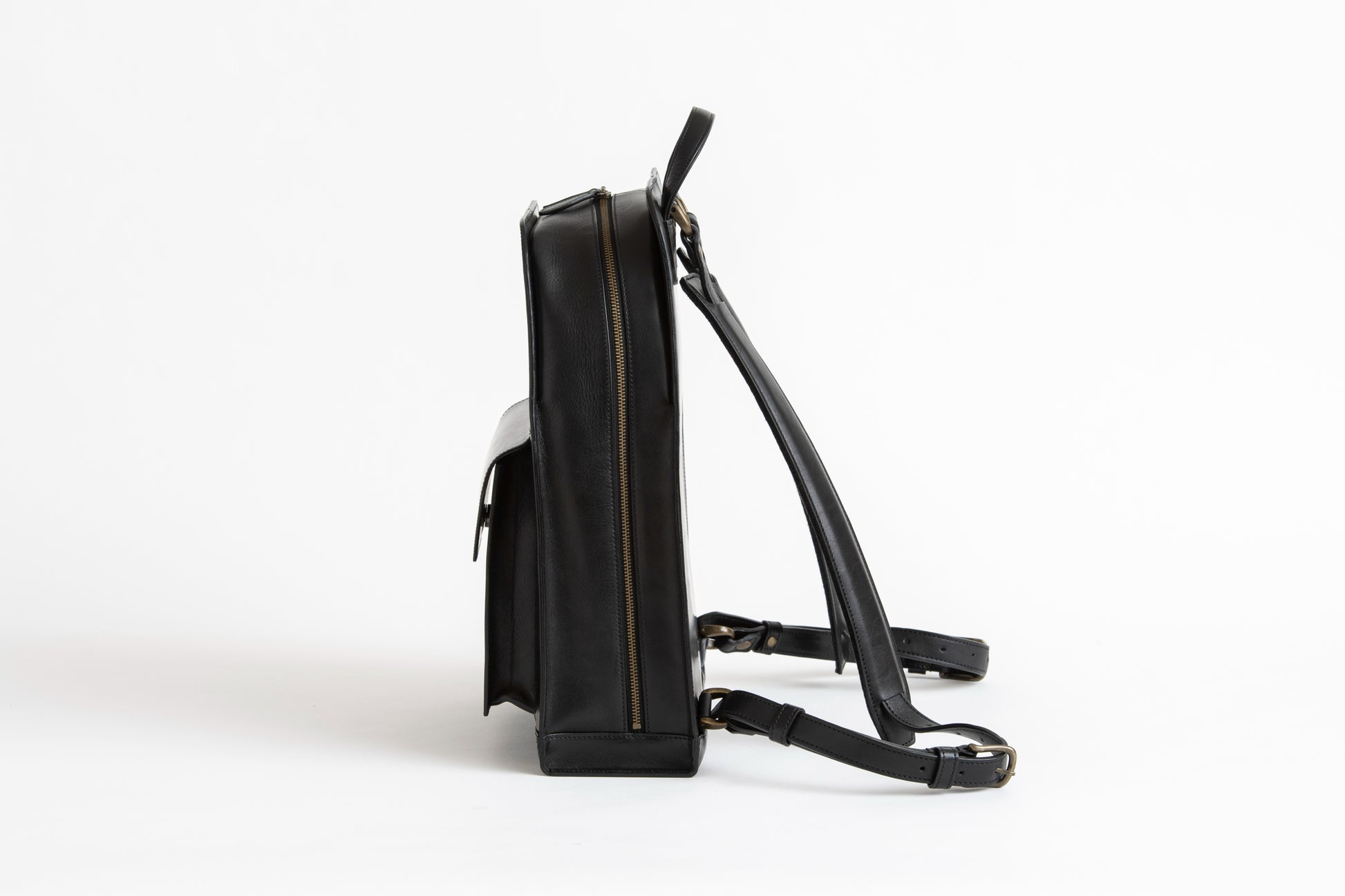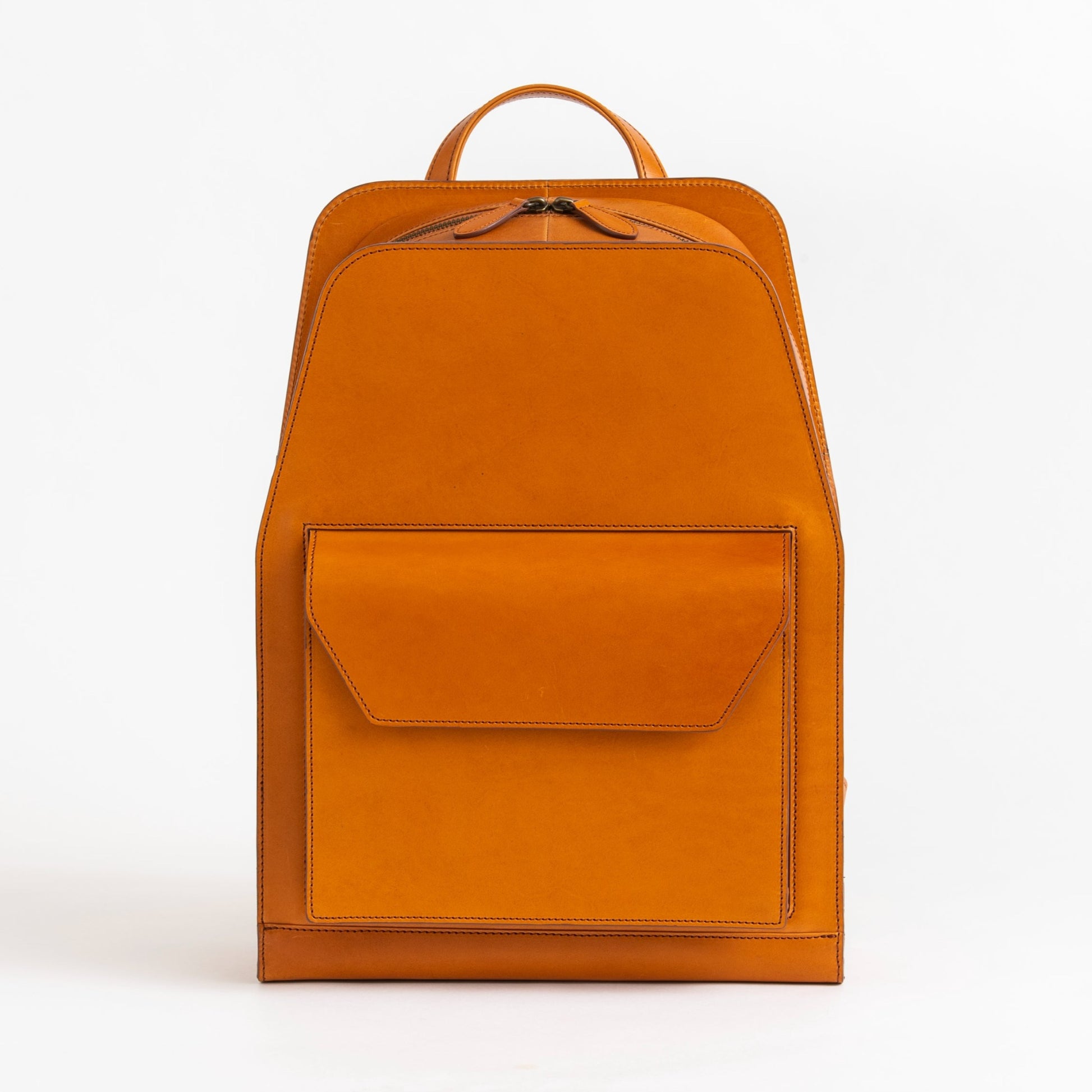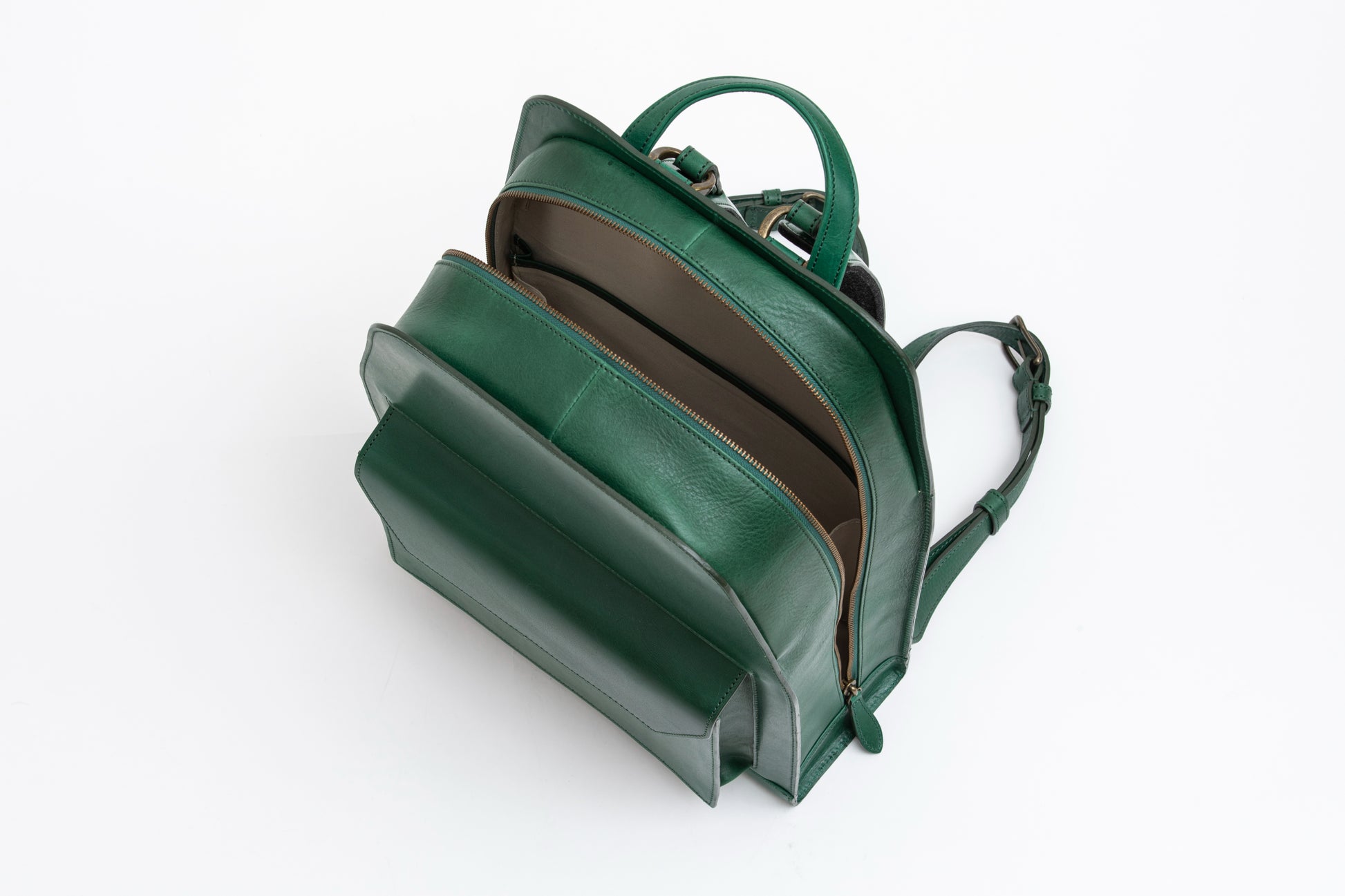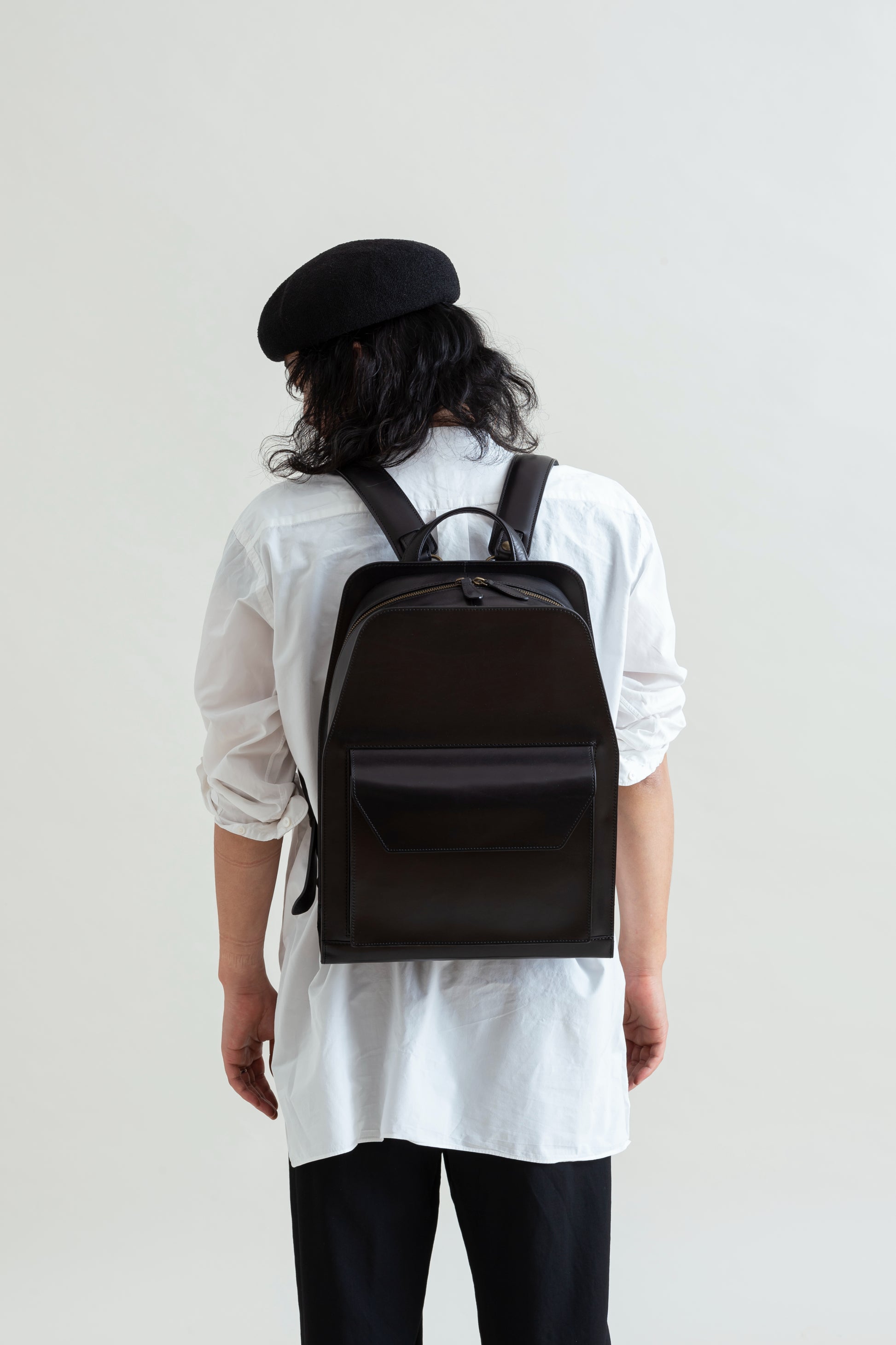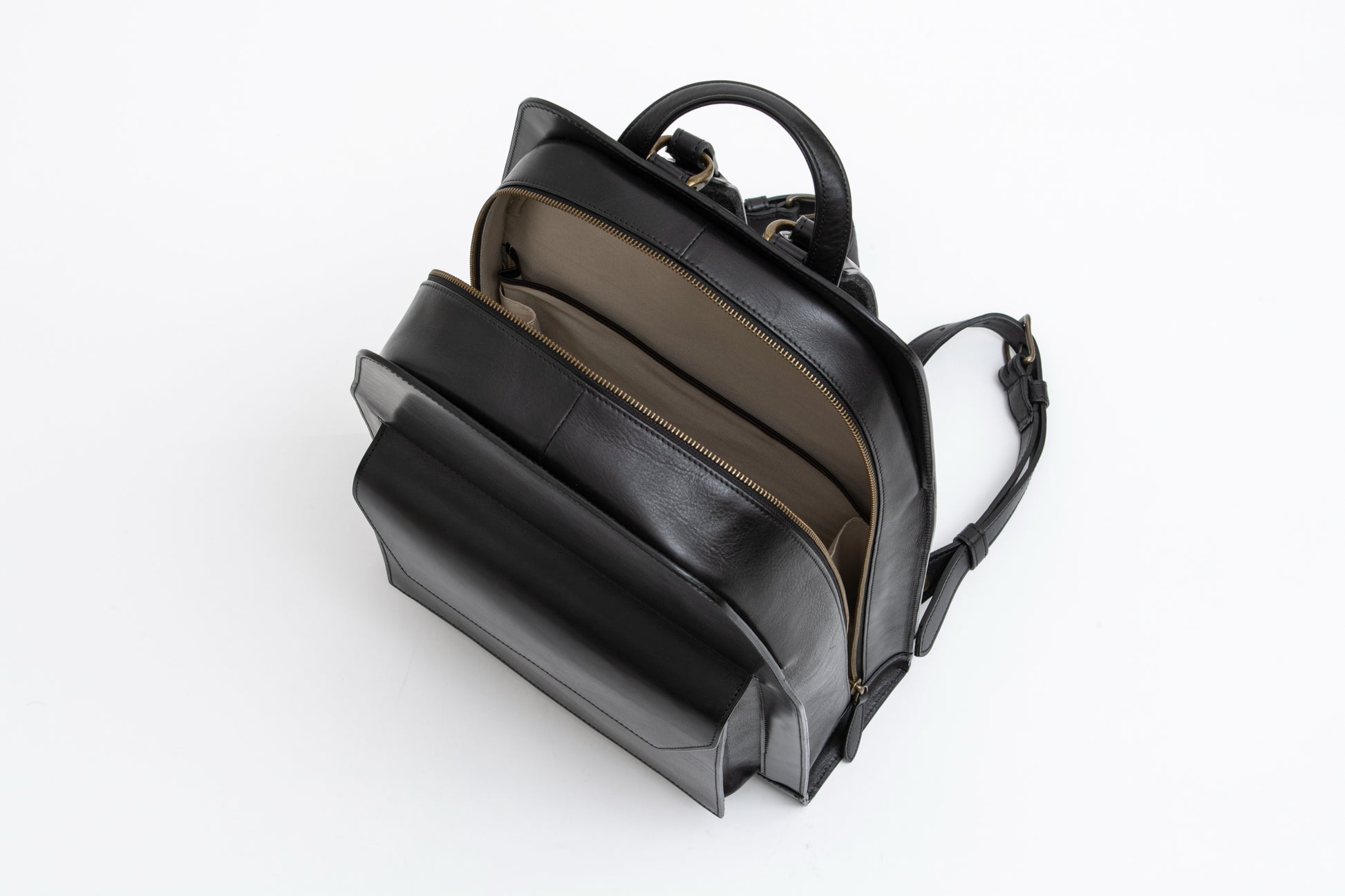 Hard leather is used for the body while soft leather is used around the zipper, allowing the backpack to fit perfectly with both business and casual outfits.