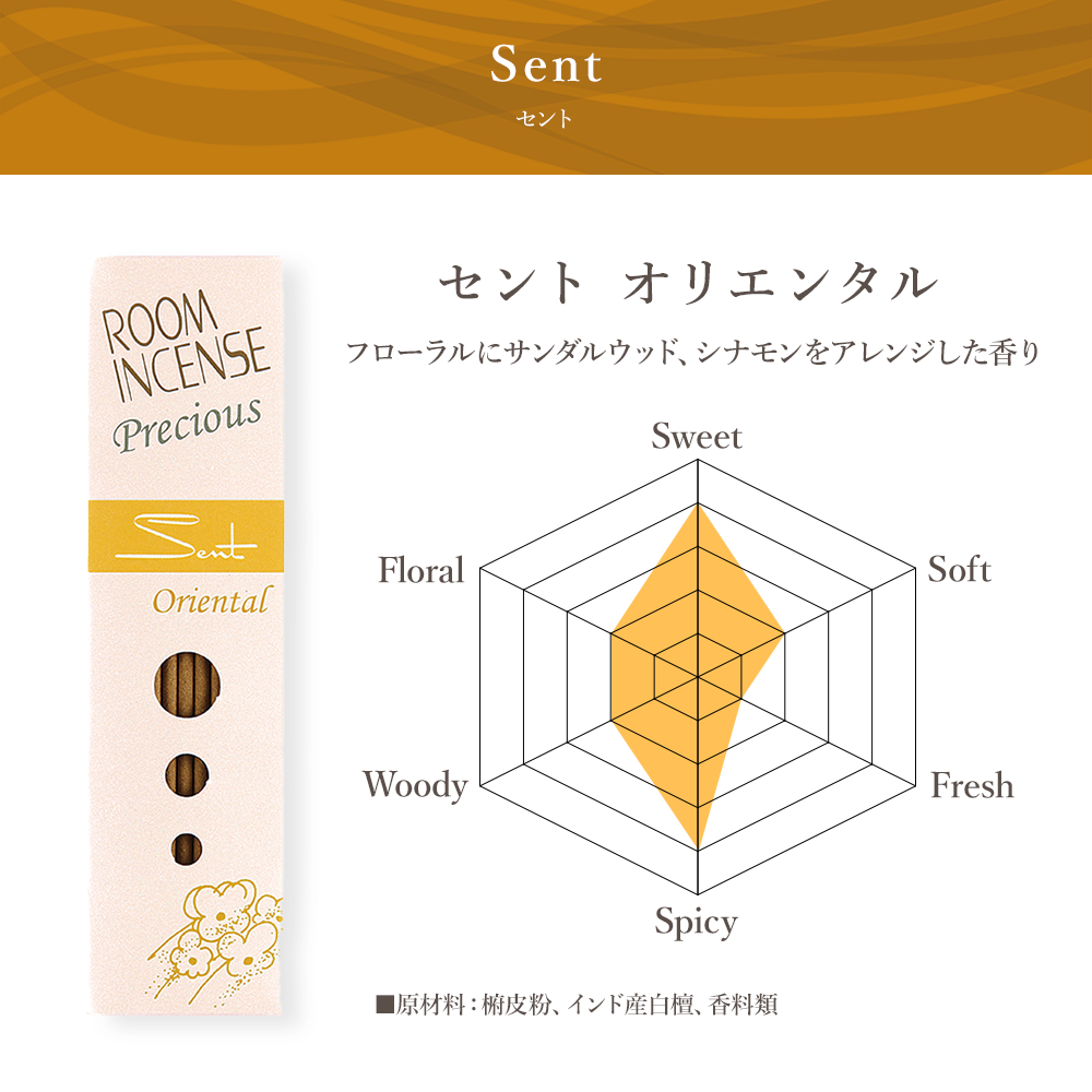 Fragrance with floral arrangements of sandalwood and cinnamon.