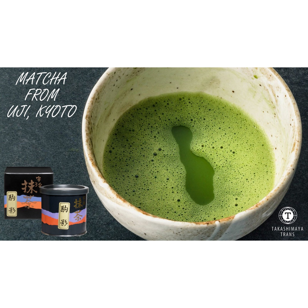 KOMAKAGE (駒影) : Our finest matcha blend of Uji varieties Asahi, Ujihikari, and Samidori with more complex taste. The blend ratio is confidential. Plucking is carefully by hand. Our finest Matcha as light tea (Usucha).